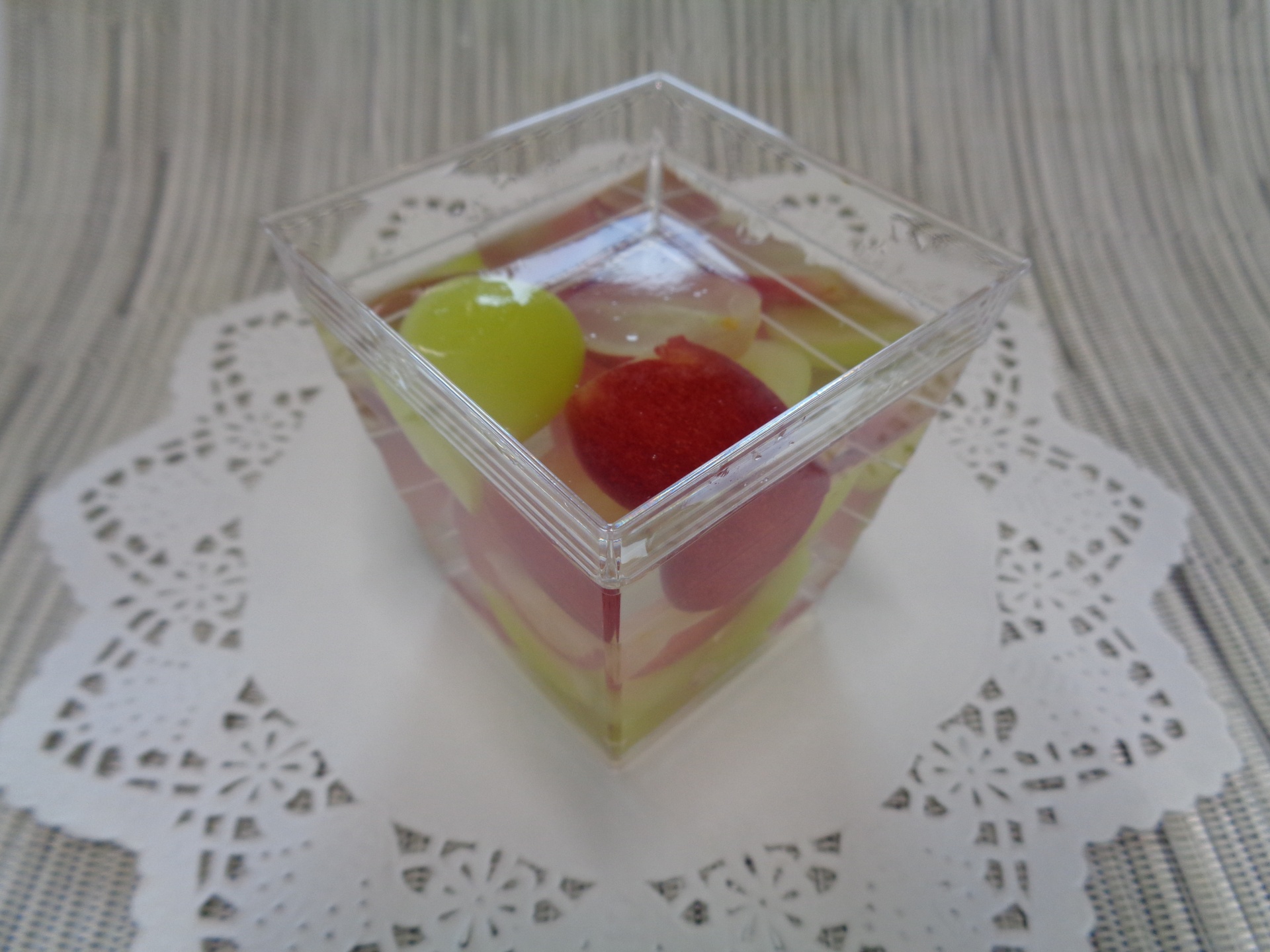 旬のぶどう(シャインマスカット・クイーンルージュ)をたっぷりと入れたゼリーです。