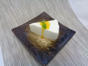 濃厚なレアチーズケーキに、デコポンソースをかけました。旬の果物を使用した1品です。