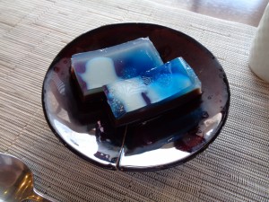 甘さ控えめな羊羹の上には、天の川がかかる夜空をイメージした寒天を流しました。
